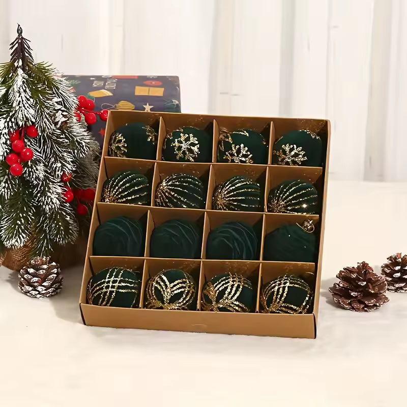- Set of 16 elegant velvet balls – perfect for creating a cohesive, premium look